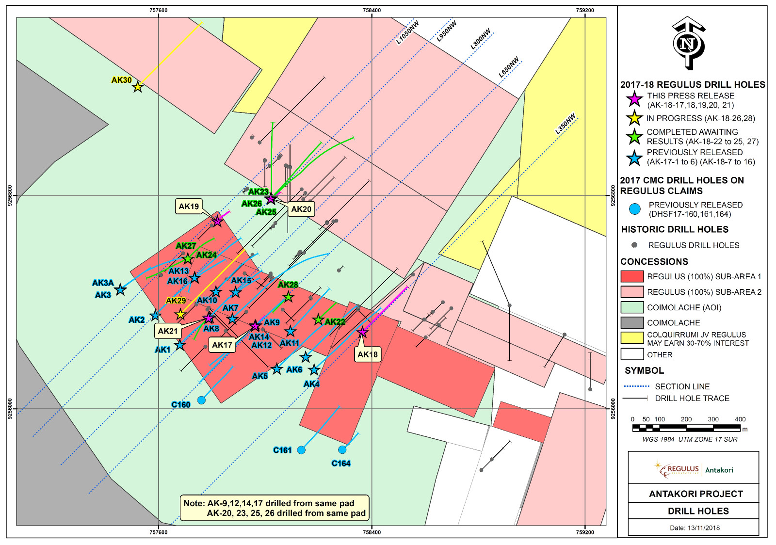 Regulus Reports Additional High-Grade Results from the AntaKori Copper-Gold-Silver Project, Peru November 15, 2018