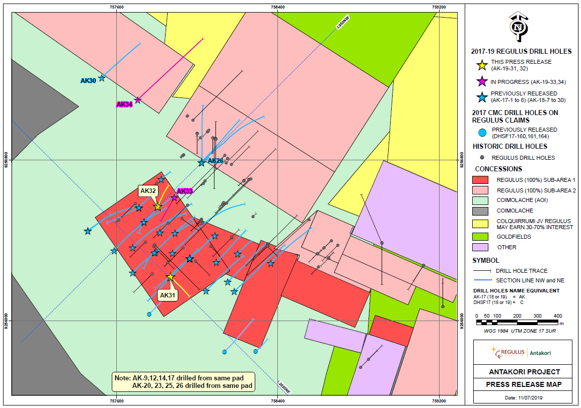 Regulus Reports 504.15 m of 0.36% Cu, 0.19 g/t Au, 2.91 g/t Ag (0.53% CuEq) in Clean, Low-Arsenic Mineralization at the AntaKori Copper-Gold Project, November 19, 2019